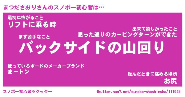 | 伝説のあだ名 | 『封印されしスナイパーまつださおり』 |