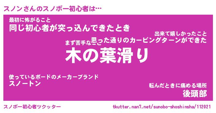 | ヘコむあだ名 | 『スノにー』『酢こんぶ』『スノっ子』 |