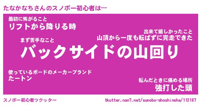 | ヘコむあだ名 | 『たなっふぃ~』『なまこ酢』 |
