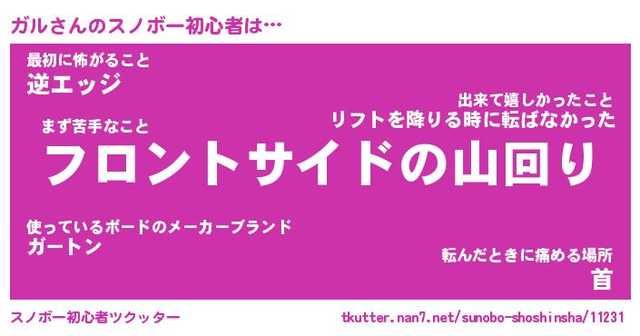 | ヘコむあだ名 | 『ガルもー』『つくし』『ガルっぺ』 |