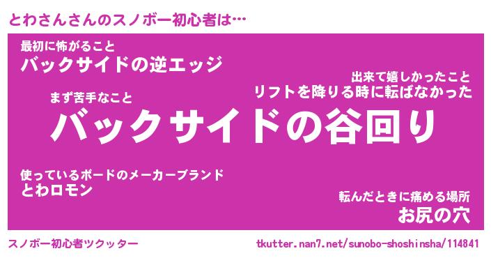 | ヘコむあだ名 | 『とわにー』『牛乳』『とわっぺ』 |