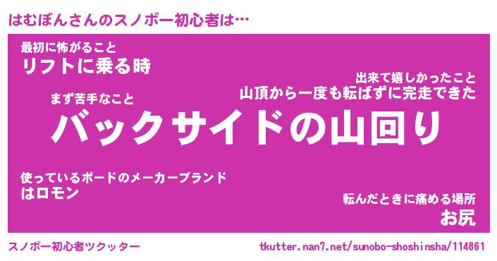 | 意味不明あだ名 | 『ペロリンはむぼん』『永久保存はむぼん』 |