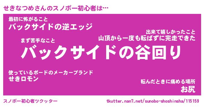 | ヘコむあだ名 | 『せきふぇ~』『牛乳』『せきっ子』 |