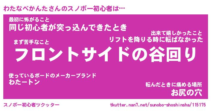 | ヘコむあだ名 | 『わたにゅー』『つくし』『わたっぺ』 |