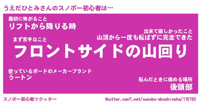 | ヒーロー風カッコイイあだ名 | 『スーパーウエダヒトミ』『炎刃騎士ウエ』 |