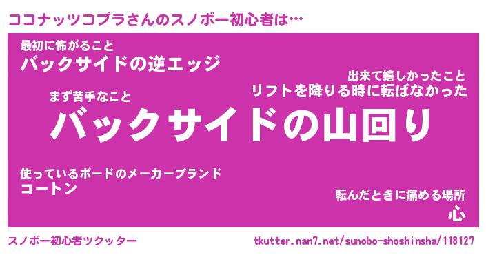 | 男性向けラノベタイトル風あだ名 | 『ココナッツコプラアートオンライン』 |