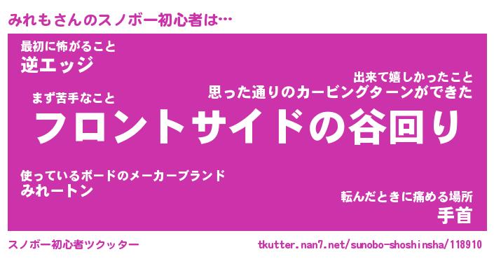 | ヘコむあだ名 | 『みれふぇ~』『つくし』『みれお』 |