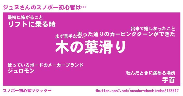 | ヘコむあだ名 | 『ジュもー』『豆乳』『ジュっぺ』 |