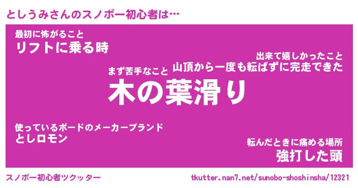 | 意味不明あだ名 | 『ペロリンとしうみ』『永久保存としうみ』 |