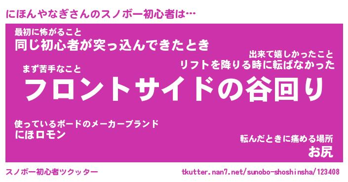 | ヘコむあだ名 | 『にほっふぃ~』『つくし』『にほを』 |