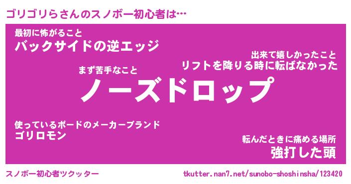 | ヘコむあだ名 | 『ゴリふぇ~』『豆乳』『ゴリお』 |