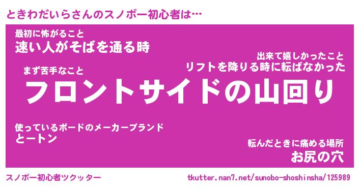 | ヘコむあだ名 | 『ときっふぃ~』『酢こんぶ』 |