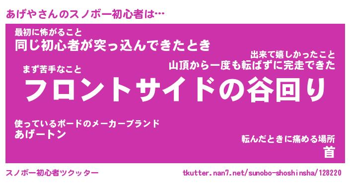 | 意味不明あだ名 | 『ペロリンあげや』『あげやフォーエバー』 |