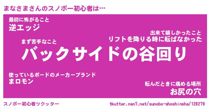 | ヘコむあだ名 | 『まなにゅー』『つくし』『まな太郎』 |