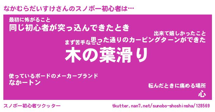| 男性向けラノベタイトル風あだ名 | 『なかむらだいすけの憂鬱』 |