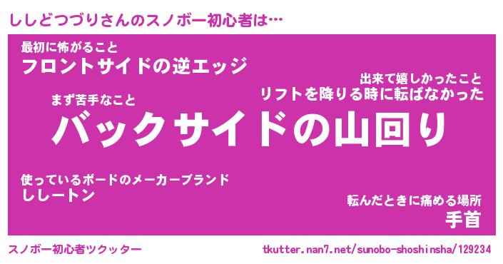 | ヘコむあだ名 | 『ししにゅー』『つくし』 |