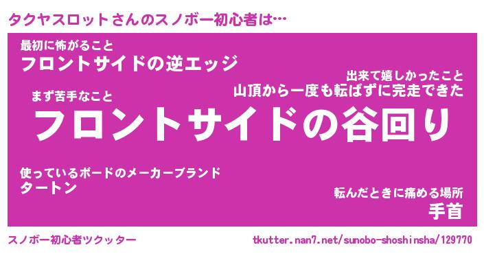 | 男性向けラノベタイトル風あだ名 | 『タクヤスロットの憂鬱』 |