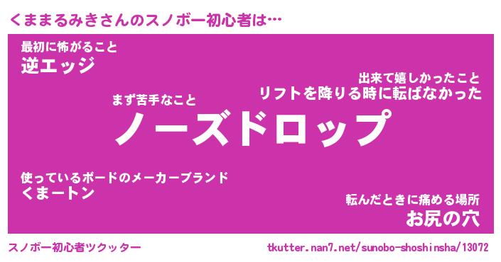 | ヘコむあだ名 | 『くまもー』『つくし』『くまっ子』 |