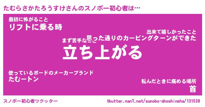 | ツイッター | たむらさかたろうすけさんのツイッターID『katatsumuri_man』 |