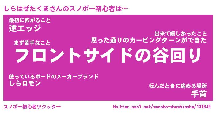 | 伝説のあだ名 | 『伝説のスナイパーしらはぜたくま』 |