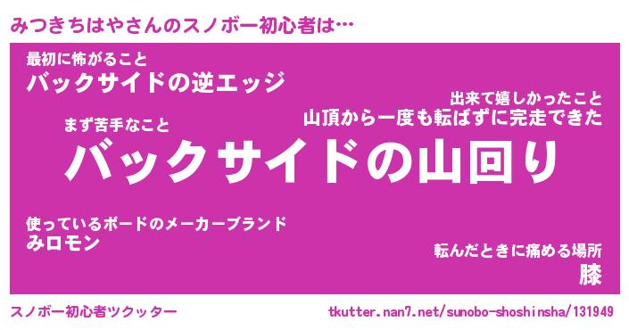 | ヒーロー風カッコイイあだ名 | 『スーパーミツキチハヤ』『天弓騎士ミツ』 |