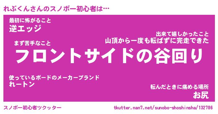 | ヘコむあだ名 | 『れぶにー』『つくし』『れぶお』 |