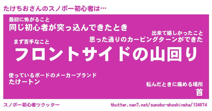 | ヘコむあだ名 | 『たけにー』『なまこ酢』『たけを』 |