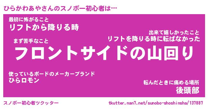 | ヒーロー風カッコイイあだ名 | 『スーパーヒラカワアヤ』『天弓騎士ヒラ』 |