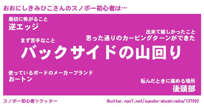 | ヘコむあだ名 | 『おおにゅー』『つくし』『おおを』 |