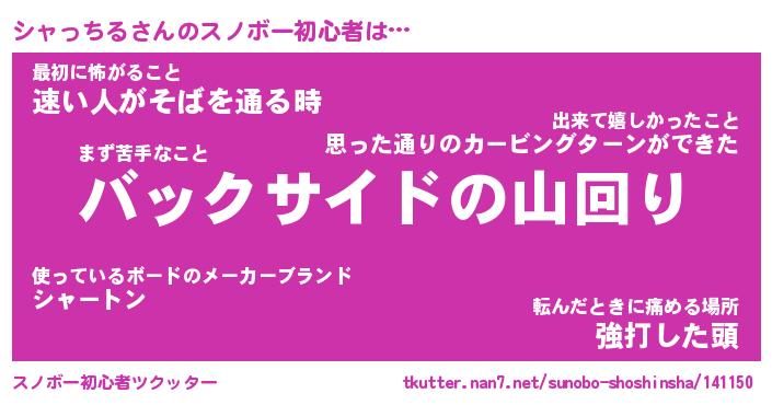 | ヘコむあだ名 | 『シャもー』『牛乳』『シャぷりん』 |