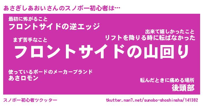 | 伝説のあだ名 | 『封印されしスナイパーあさぎしあおい』 |