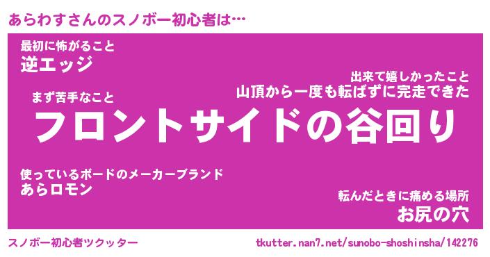 | ヘコむあだ名 | 『あらふぇ~』『つくし』『あらを』 |