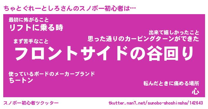 | 女子向けラノベタイトル風あだ名 | 『ちゃとぐれーとしろ姫と円卓の騎士』 |