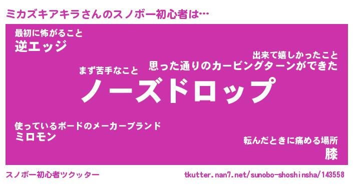 | 伝説のあだ名 | 『伝説のスナイパーミカズキアキラ』 |