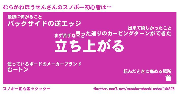 | 男性向けラノベタイトル風あだ名 | 『ムラカワホウセンアートオンライン』 |