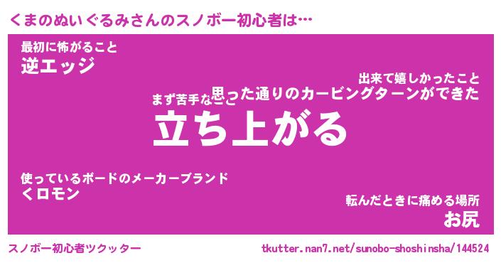 | ヘコむあだ名 | 『くまっふぃ~』『つくし』 |