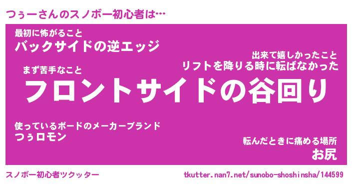 | ファンタジー風あだ名 | 『ツゥフェル』『エターナルツゥーー』 |