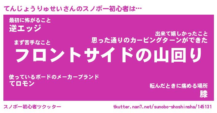 | ヘコむあだ名 | 『てんにー』『なまこ酢』『てん太郎』 |