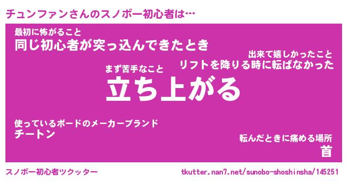 | ヘコむあだ名 | 『チュにー』『なまこ酢』『チュお』 |