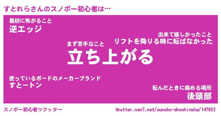 | ヘコむあだ名 | 『すとっふぃ~』『つくし』『すとを』 |