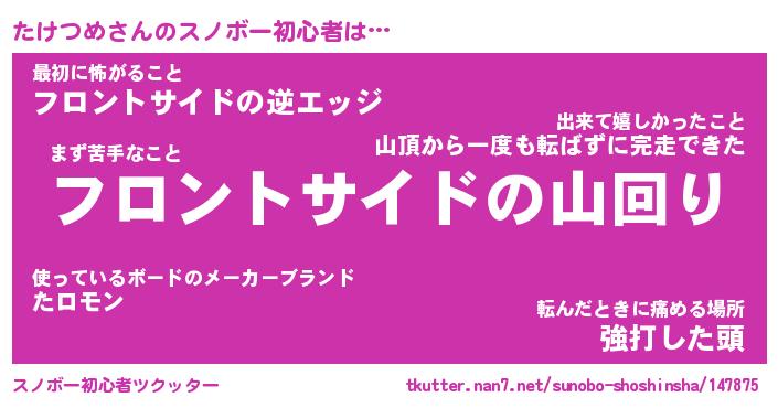 | ファンタジー風あだ名 | 『タケフェル』『エターナルタケツメー』 |