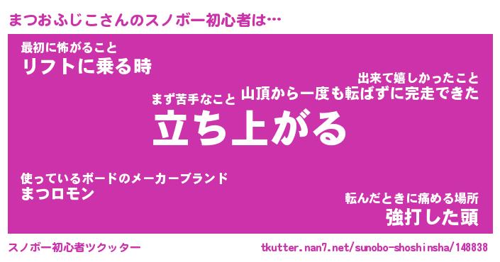 | 伝説のあだ名 | 『不死鳥のスナイパーまつおふじこ』 |