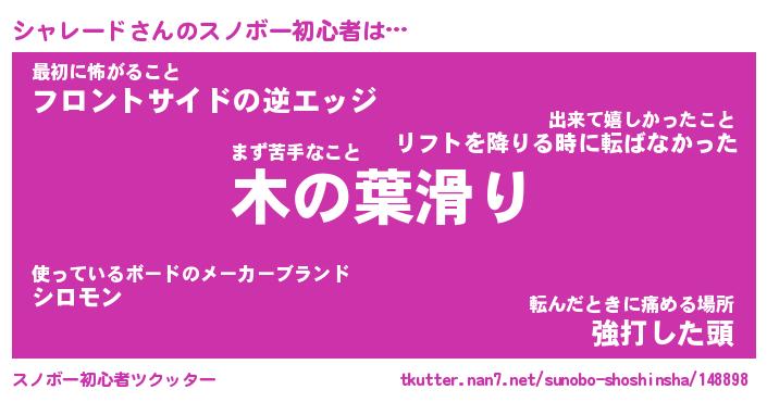 | ヘコむあだ名 | 『シャもー』『牛乳』『シャっ子』 |