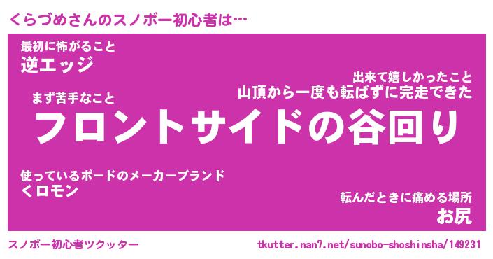 | ヘコむあだ名 | 『くらもー』『つくし』『くらっちょ』 |