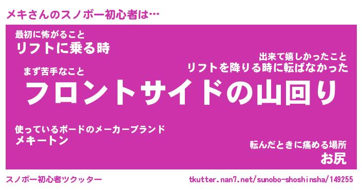 | ヘコむあだ名 | 『メキにゅー』『なまこ酢』『メキを』 |