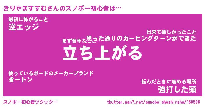 | ヘコむあだ名 | 『きりもー』『つくし』『きり太郎』 |