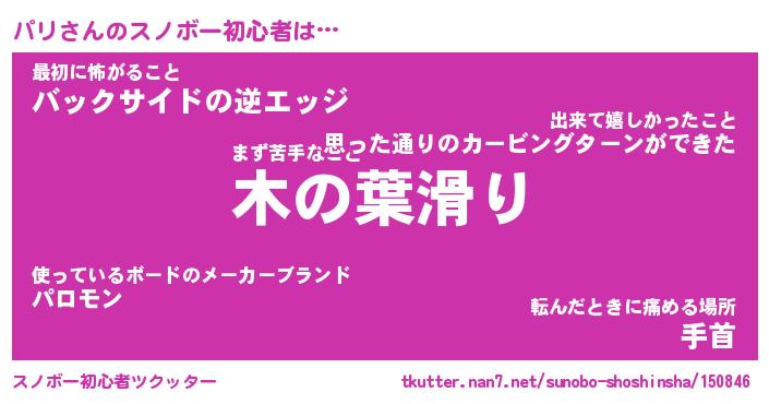 | ヘコむあだ名 | 『パリふぇ~』『豆乳』『パリっちょ』 |