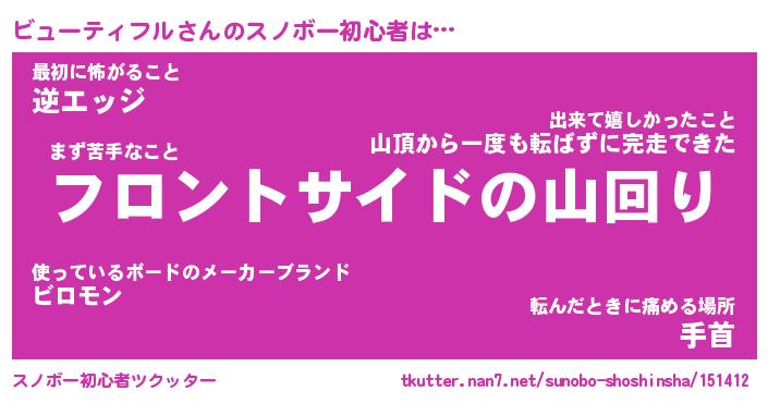 | ヘコむあだ名 | 『ビュにー』『酢こんぶ』『ビュを』 |