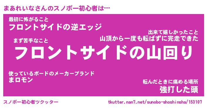 | 伝説のあだ名 | 『封印されしスナイパーまあれいな』 |