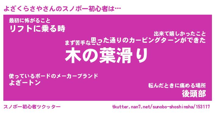 | 伝説のあだ名 | 『伝説のスナイパーよざくらさや』 |